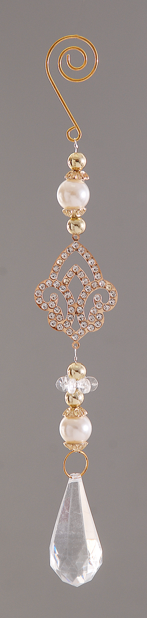 ACRYLIC GOLD/PEARL ORNAMENT WITH CHRYSTAL