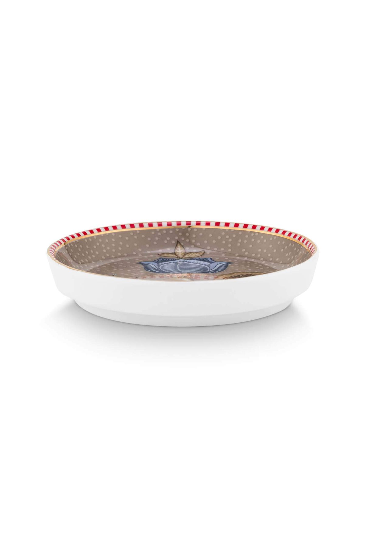 “TEA TIP BLOOMING TALES FANTASY KHAKI 9CM. A SMALL DETAIL WITH BIG CHARM: THE TEA TIP BLOOMING TALES FANTASY KHAKI. PERFECT FOR PLACING YOUR TEABAG IN STYLE AFTER BREWING. THE GOLDEN RIM ADDS A SUBTLE, LUXURIOUS LOOK. MADE FROM HIGH QUALITY PORCELAIN THAT PAIRS BEAUTIFULLY WITH THE REST OF THE BLOOMING TALES COLLECTION. DISCOVER THE RENEWED BLOOMING TALES TABLEWARE COLLECTION AN ELEGANT REINTRODUCTION OF A BELOVED CLASSIC. FEATURING ICONIC FLORAL DESIGNS IN SOFT KHAKI AND FRESH BLUE. PERFECTLY DESIGNED FOR MIXING AND MATCHING. THE DIAMETER IS 9CM. MADE OF 100% A-GRADE WHITE PORCELAIN. THE MATERIAL IS NOT MICROWAVE AND DISHWASHER SAFE DUE TO THE GOLDEN DECORATIONS. HAND CLEANING ONLY IN A MILD SOLUTION OF LIQUID DETERGENT IS ADVISED. COLOR KHAKI