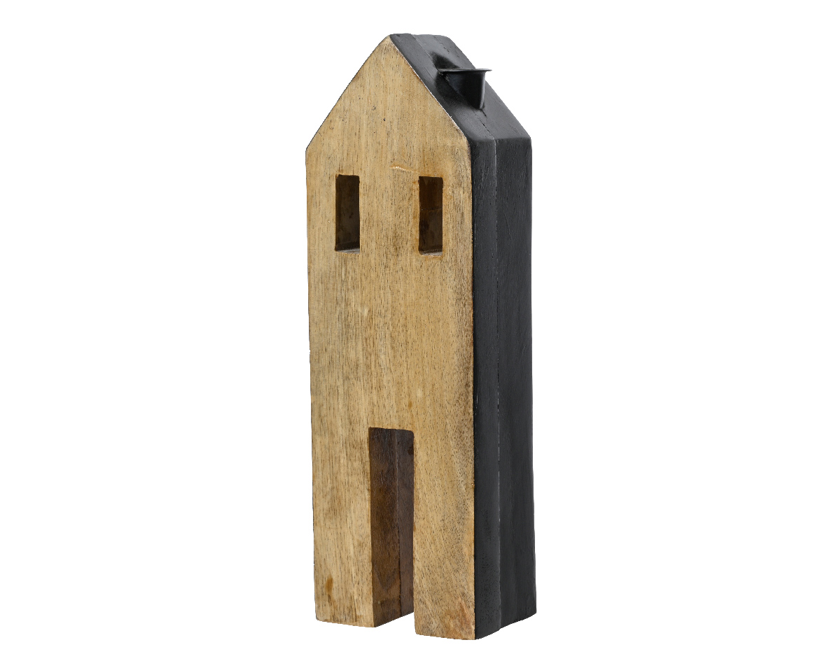 Candleholder large mangowood house 9.5 X 6 X H.29cm brown fsc mix 70% indoor