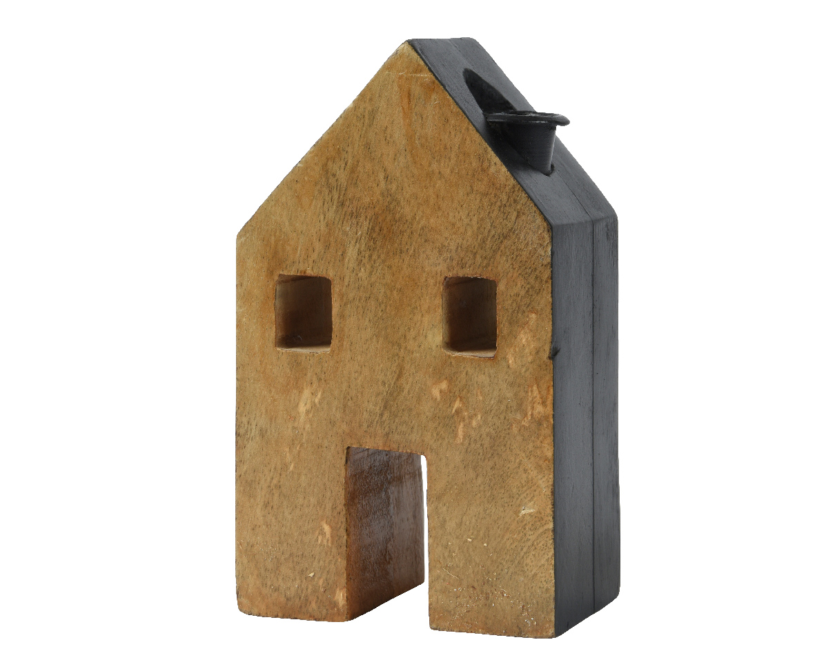 Candleholder small mangowood house 9.5 X6 X H.16cm brown fsc mix 70% indoor