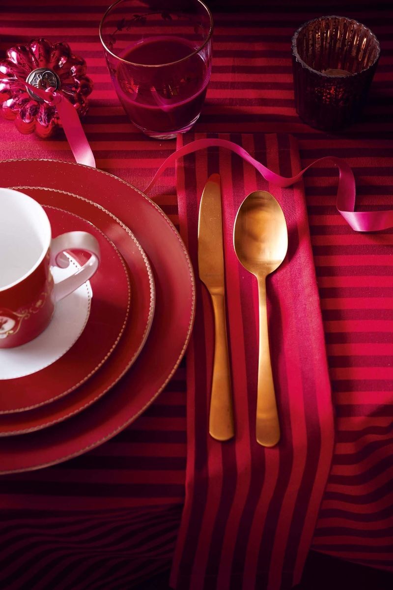 Dinner Plate Love Birds Dark Red 26.5cm. This dinner plate from our Love Birds collection is a true eye-catcher that turns every meal into a special occasion. The deep red gives it a warm, rich look and forms the perfect canvas for the elegant medallion at the centre, featuring two beloved birds surrounded by delicate flowers and refined golden details. This plate is ideal for an elaborate dinner, a stylish lunch, or a festive meal with friends and family. A plate that not only serves but also tells a story full of charm, colour, and a touch of Pip magic. Made of 100% A-grade white porcelain. The material is not microwave and dishwasher safe due to the golden decorations. Hand cleaning only in a mild solution of liquid detergent is advised.