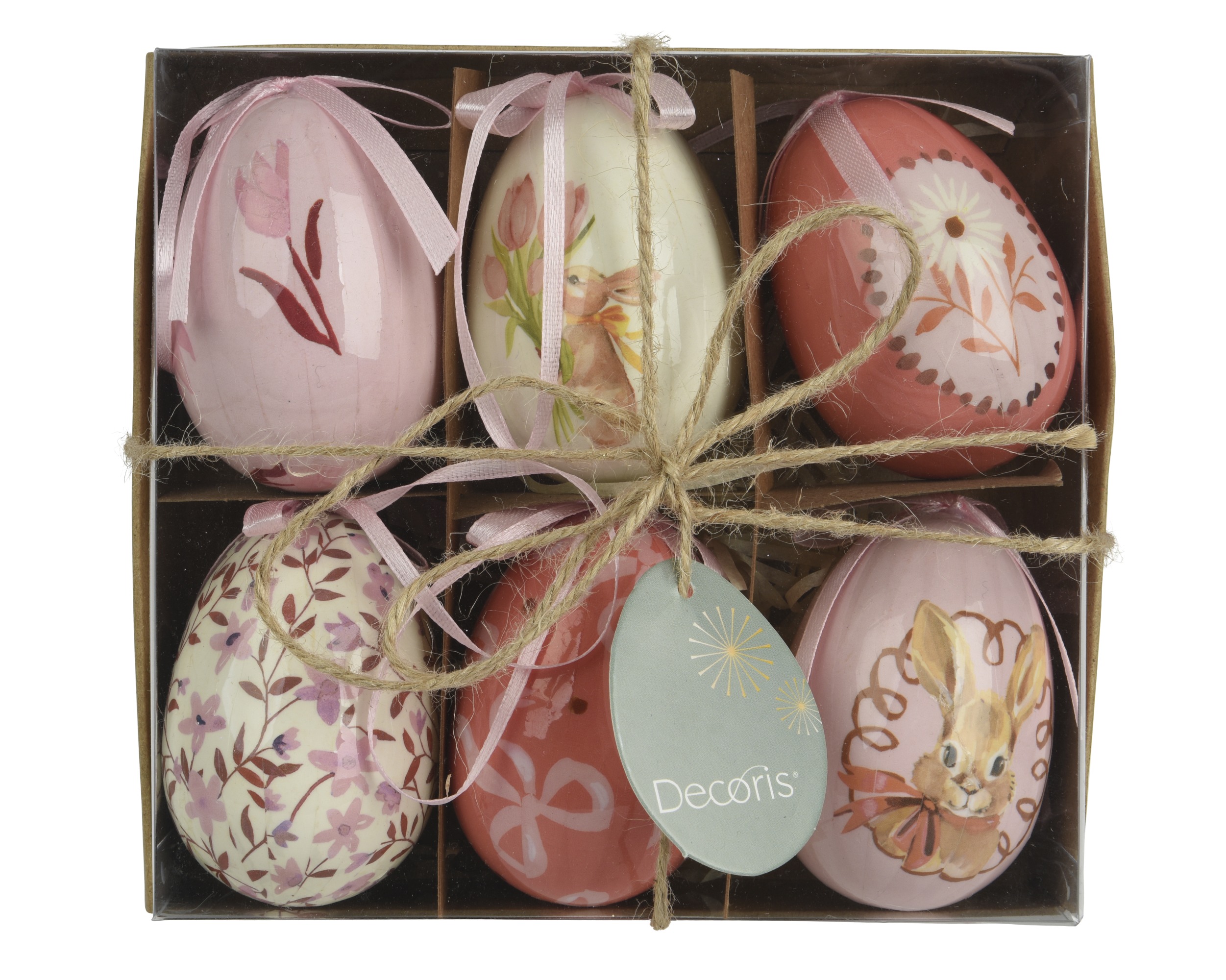 EGG HIGH GLOSS WINDOW BOX A 6PCS TUILIP/RABBIT WITH TULIP/WHITE FLOWER/PINK FLOWER/PINK BOW/RABBIT