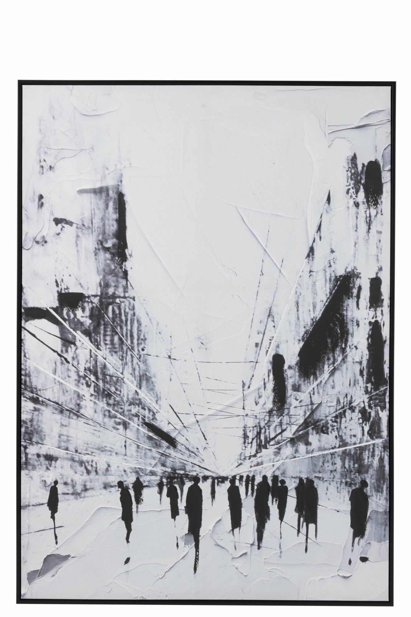 Frame Abstract City People Canvas/Wood Black/White