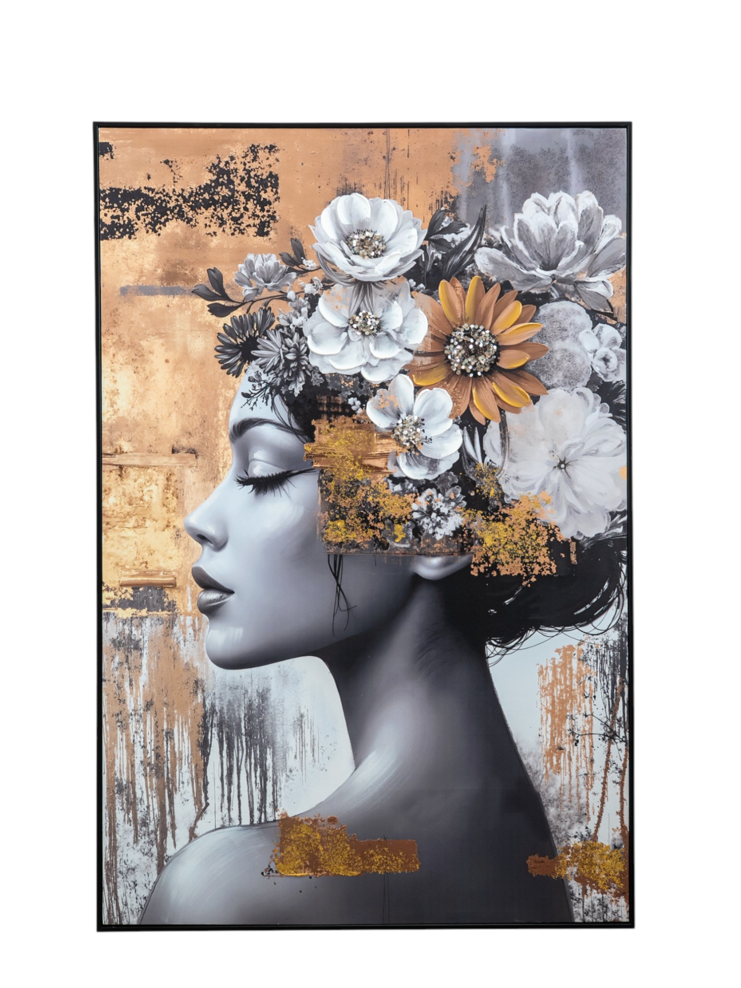 HAND PAINTING LADY SIDE WITH FLOWERS + PS FRAME