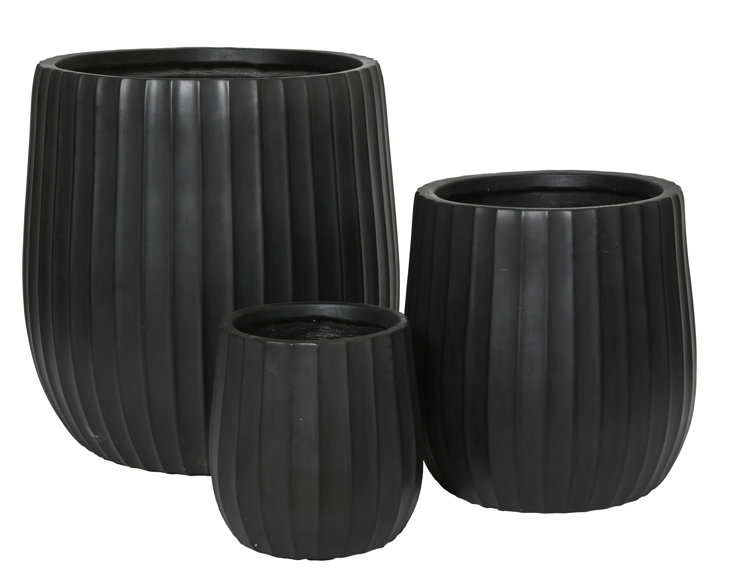 KAE BLACK PLANTER FIBRECLAY ROUND WIDE RIBS INDOOR/OUTDOOR