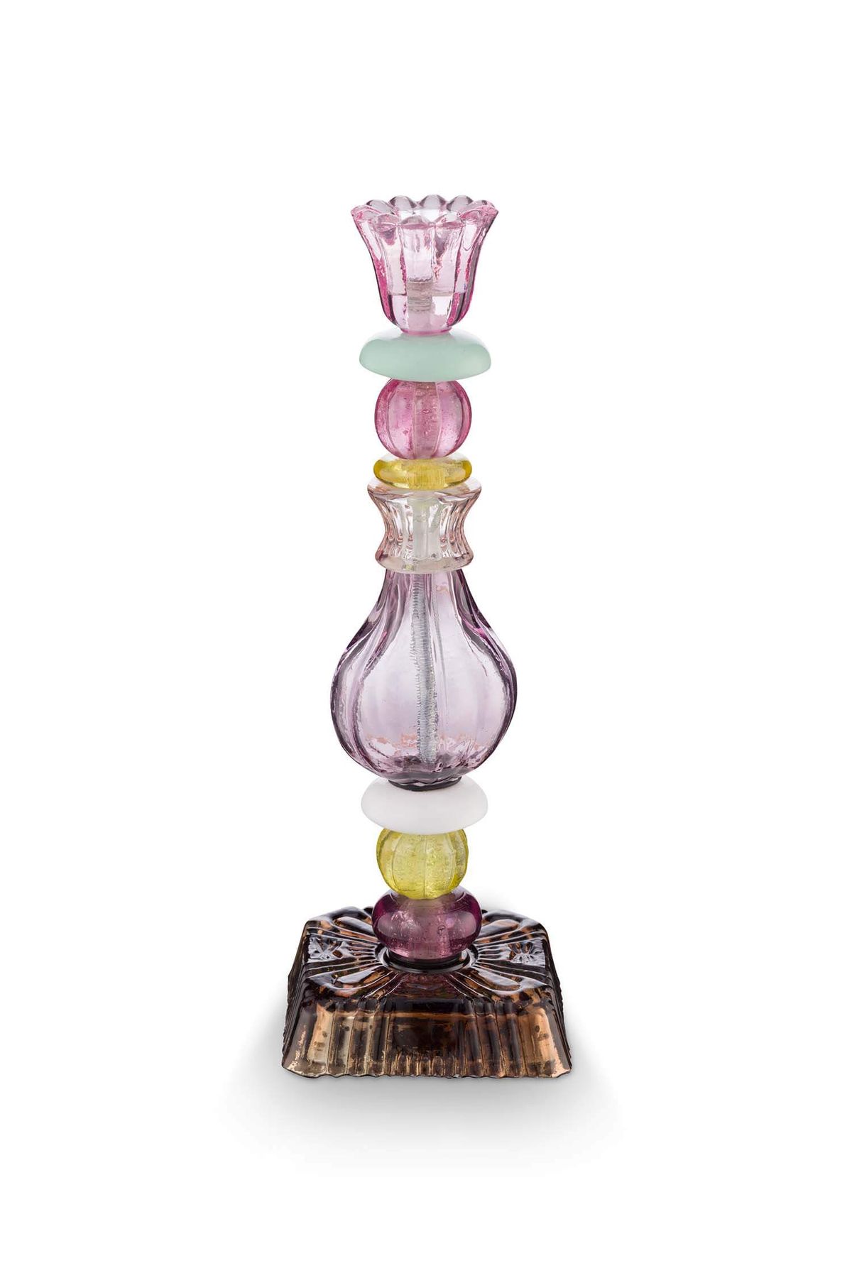 “CANDLE HOLDER GLASS BEADS LILAC 28CM. LET YOUR INTERIOR SHINE WITH THE 28CM GLASS BEAD CANDLE HOLDER IN LILAC. THIS TALL GLASS HOLDER IS FINISHED WITH A REFINED BEADED PATTERN THAT CREATES A PLAYFUL DISPLAY OF LIGHT WHEN A CANDLE IS LIT. THE SOFT LILAC HUE ADDS A ROMANTIC AND STYLISH TOUCH TO ANY ROOM. PERFECT AS A STANDALONE PIECE OR COMBINED WITH OTHER CANDLE HOLDERS FOR A LAYERED EFFECT. AN ELEGANT EYECATCHER FOR YOUR TABLE, WINDOWSILL OR SIDEBOARD. MATERIAL: GLASS. HAND WASH ONLY, DON’T USE ABRASIVE DETERGENTS.COLOR LILAC