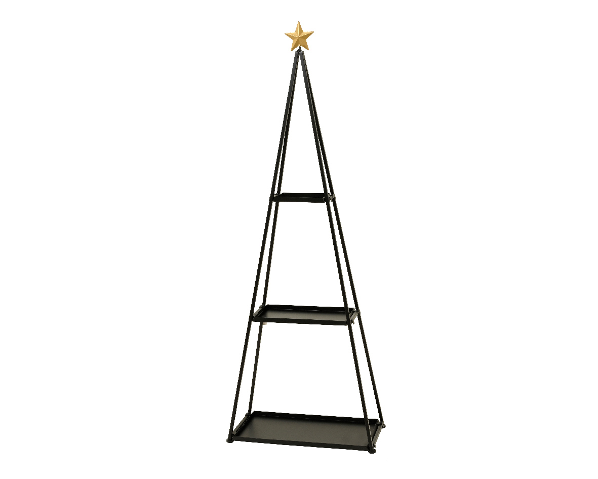 Metal black cabinet pyramis 61 X 30 X H.172cm with gold star 3layers