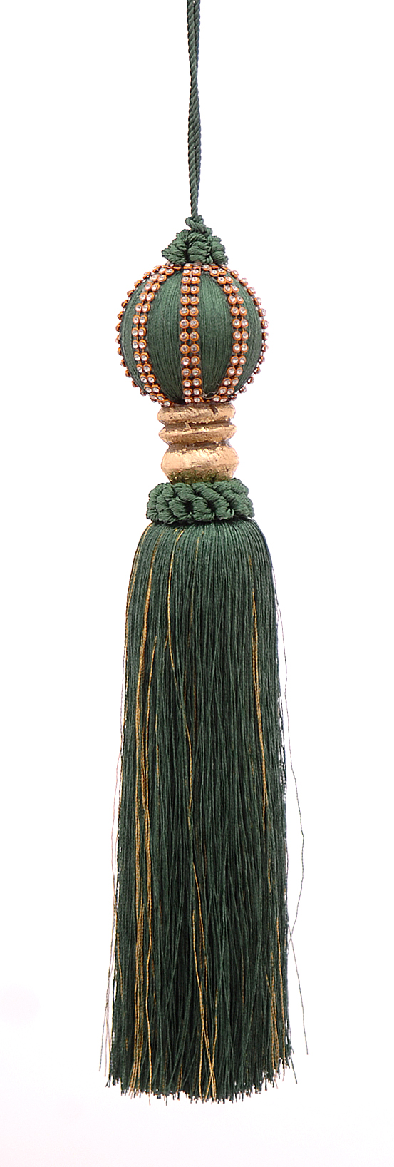 Polyester green/gold ball with long tassel 7 X H.28cm