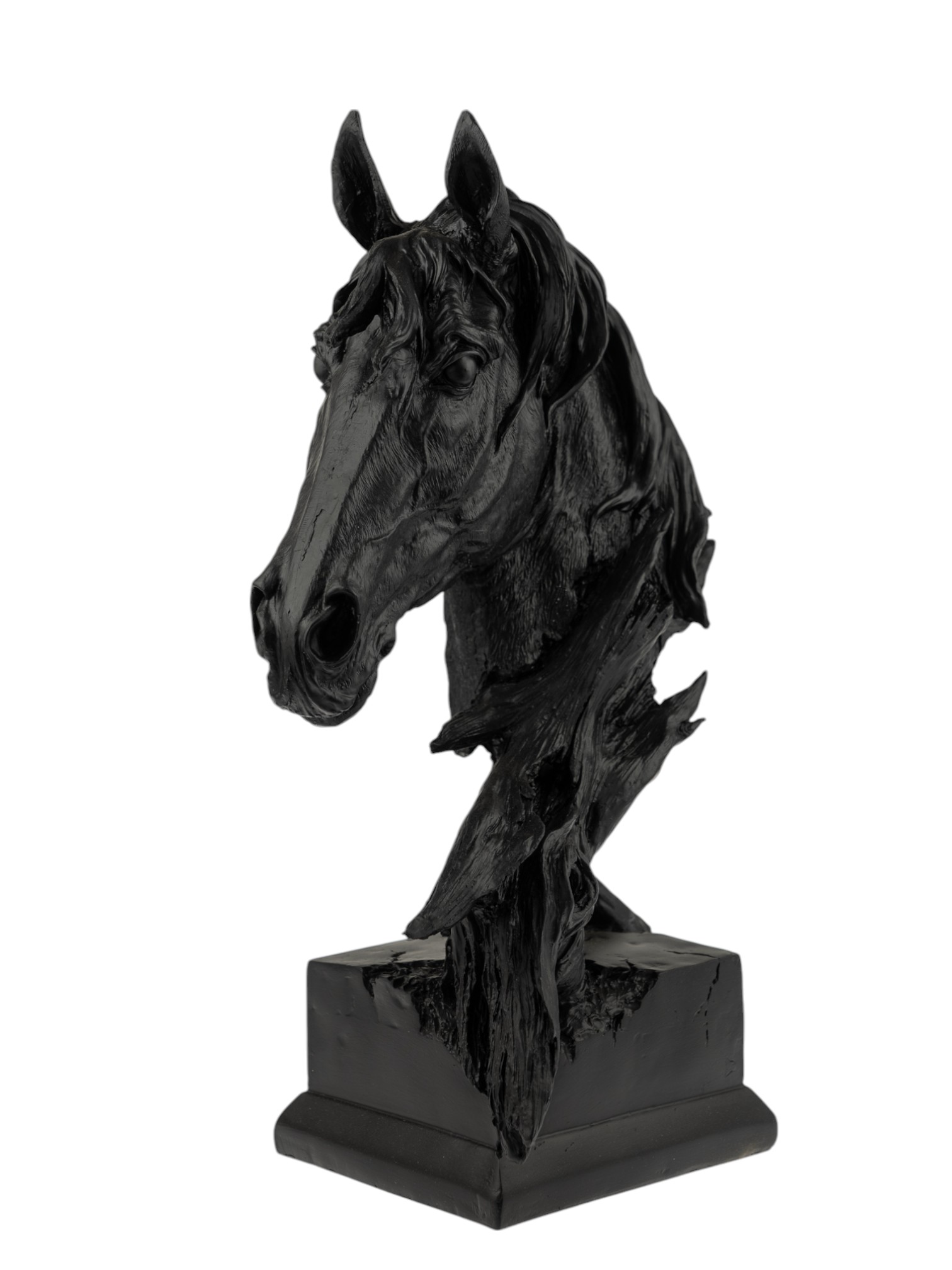 POLYRESIN HORSE BUST ON BASE BLACK