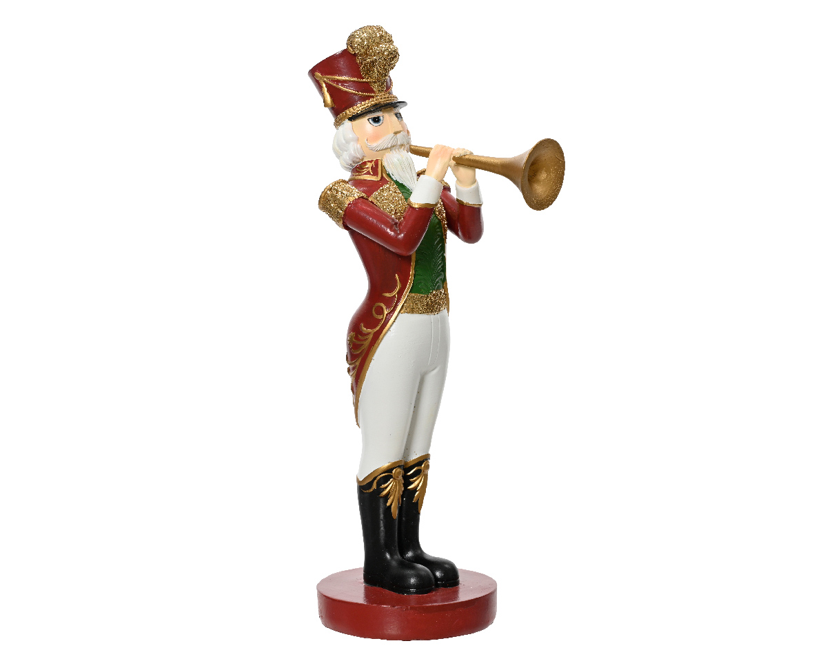 Polyresin red nutcracker with trumpet 12 X 7.5 X H.25 handmade