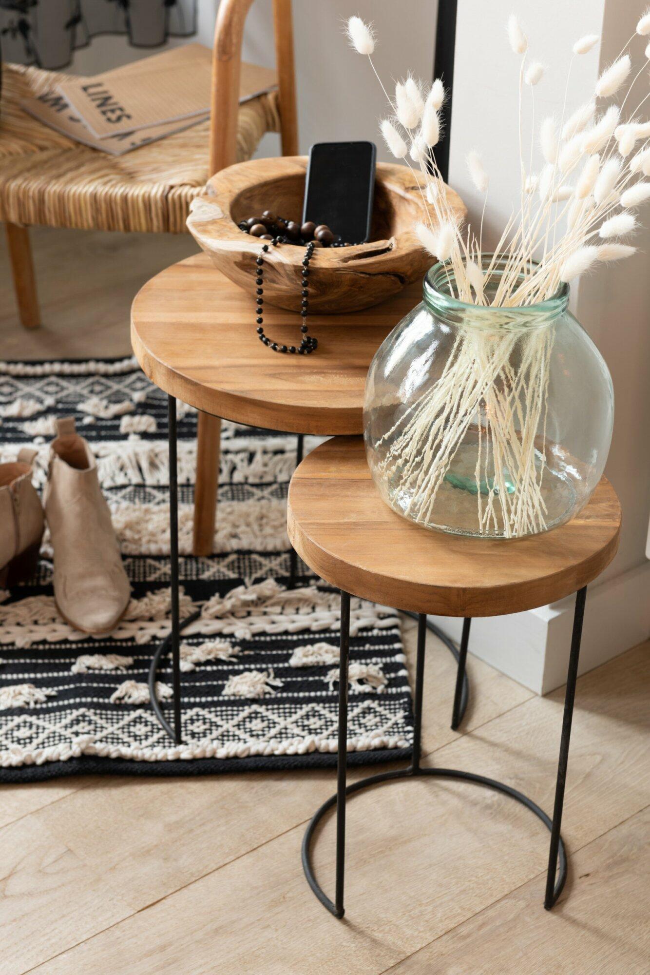ROUND SIDE TABLES TEAK WOOD SET OF 2