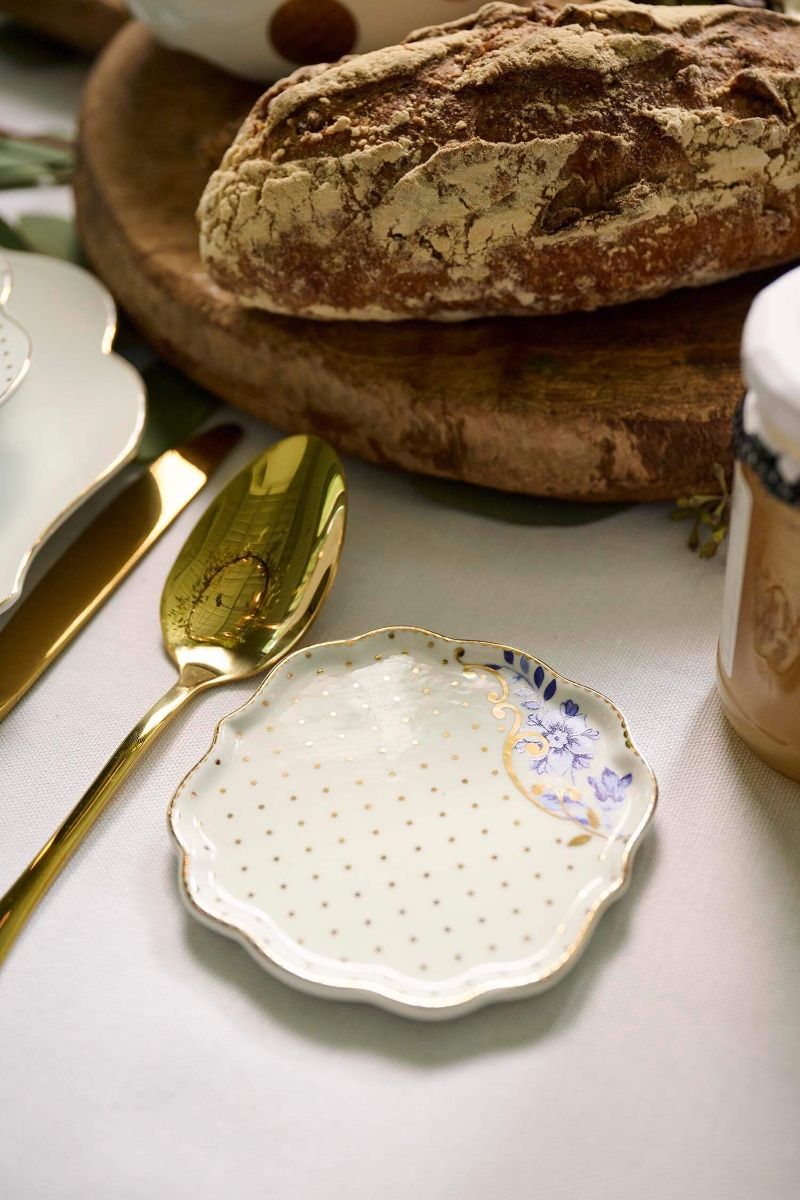 “ROYAL WHITE TEA TIP 10 CM. THE TEA TIP WITH THE ROYAL WHITE DESIGN IS PART OF OUR ROYAL WHITE PORCELAIN SET. ROYAL WHITE IS REFINED PORCELAIN WITH SUBTLE BLUE PAINTED FEATURES AND GOLDEN ELEMENTS. THE TEABAG DISH WITH THE ROYAL WHITE DESIGN IS PART OF OUR ROYAL WHITE PORCELAIN SET. ROYAL WHITE IS REFINED PORCELAIN WITH SUBTLE BLUE PAINTED FEATURES AND GOLDEN ELEMENTS.TEA TIP DIAMETER: 10 CM GOLDEN DETAILS MADE OF DELICATE PORCELAIN PART OF OUR ROYAL COLLECTION. MATERIAL: 100% PORCELAIN PLEASE WASH BY HAND. IT’S NOT SAFE TO USE THIS IN A DISHWASHER OR MICROWAVE. COLOR WHITE