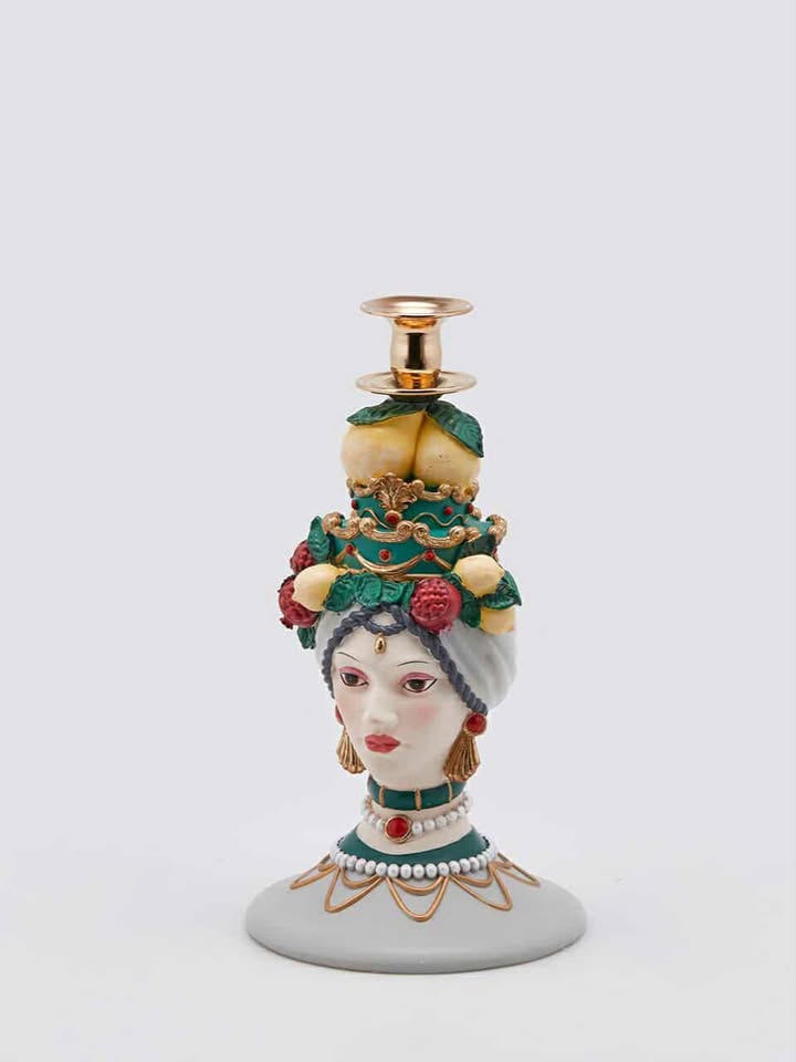 Portacandele Sicily Green Candleholder Polyresin