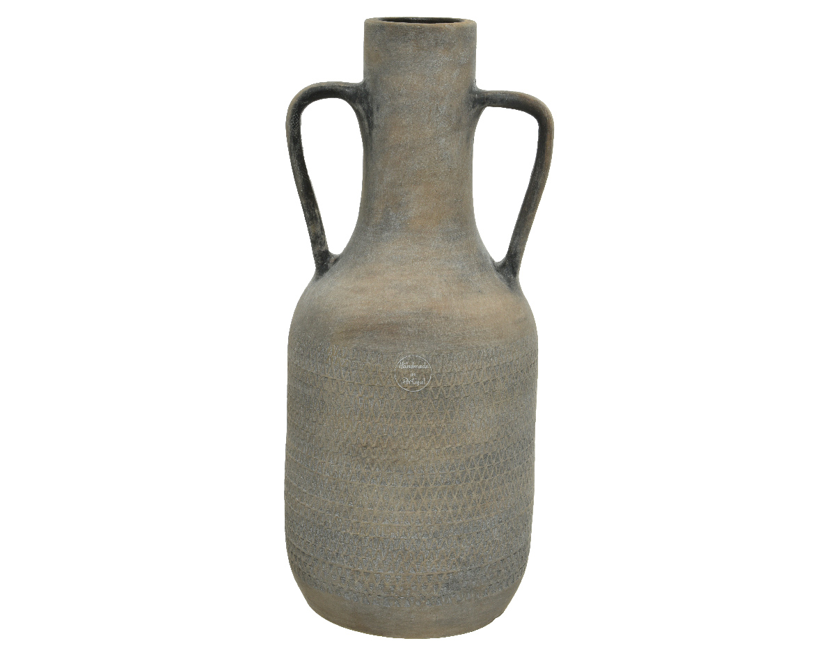 Vase Terracotta With Two Hands Dark Brown